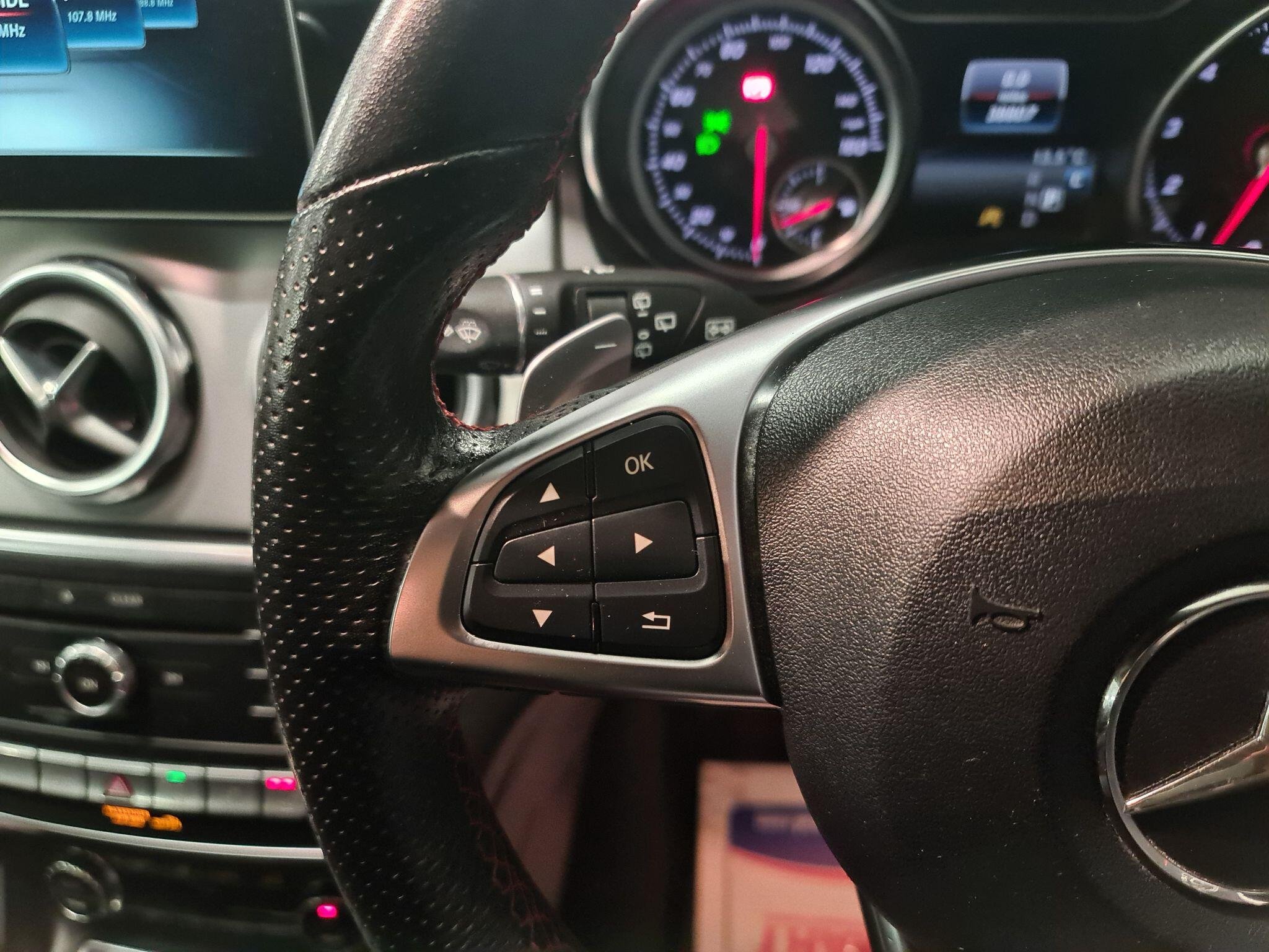 - Steering Wheel - 3-Spoke - 12 Button Multi-Function - Trimmed in Nappa Leather with Perforated Leather in Grip Area - Flattened Bottom Section